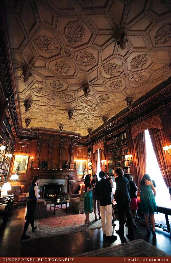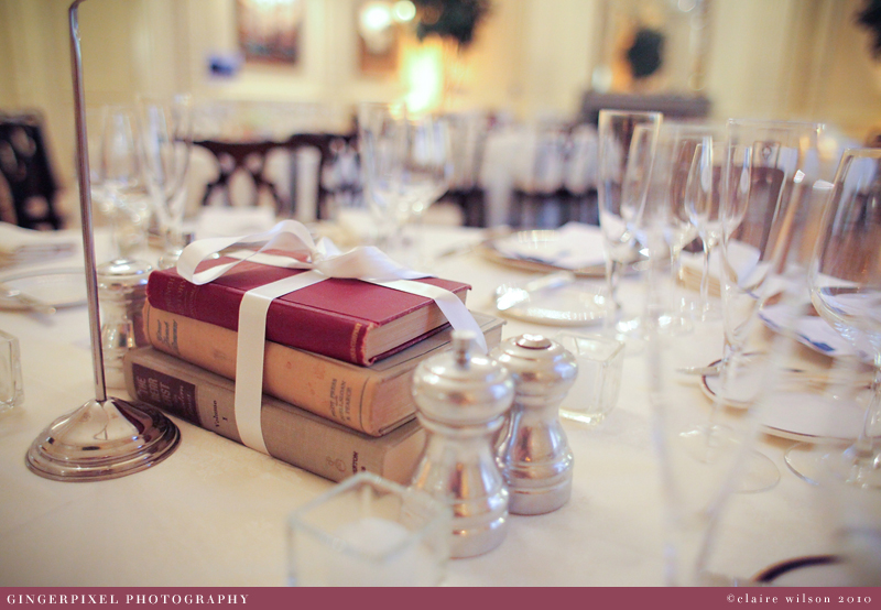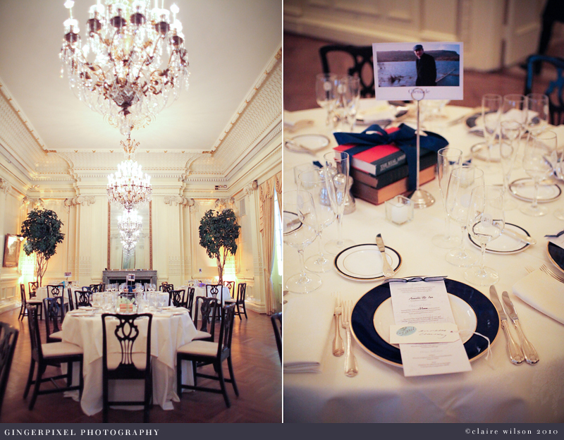 While the guests mingled in the library I slipped in to the dining room to take some photos of the tables all laid out. I loved the books wrapped in ribbons and there were photos of their travels in Ireland on each table: